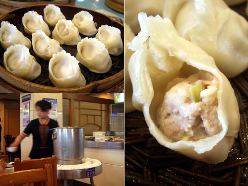 前のページからの話の続きだが、一番華やかな形は「素什錦」だ。他のも同じ方向に10個並んでいると可愛く見得る折方で見た目も楽しめる。「素什錦」は10個で10元(150円)。最後は「春蝦蒸餃」(20元-300円)。昨日とは違ってこちらは海老の身がたっぷり。いやー、今日もたっぷりと餃子を楽しんだ。この店は当たりだ。やがて茹で汁配給サービスが始まった。飲むととても消化にいいし、口中がさっぱりする。しかも茹で汁。無駄がない。
