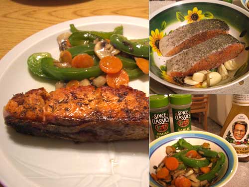 献立:サーモンのソテー、パプリカのマリネ
