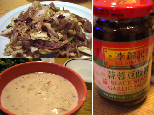 いただきものの牛肉は腐っているかと思う程赤黒かったが、柔らかい。コショウをふんだんにふって臭みもない。そして、主役級の働きはトウチ醤だ。写真は悪いが味は最高。自画自賛。