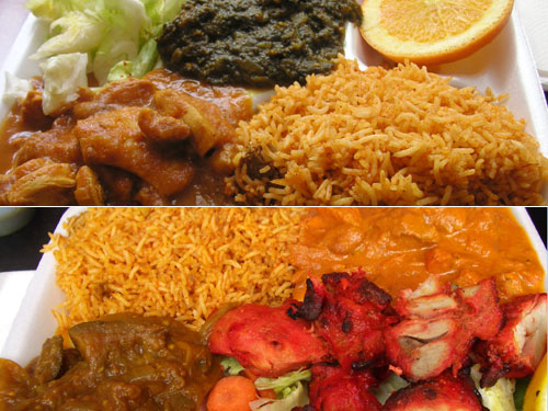 上からほうれん草、チキン、チキンマサラ、なす。具が溶けるほどに煮込んである。チキンはオーソドックス。チキンマサラはクリームが入っている。全てスパイスは控えめ。アメリカ味なのか?