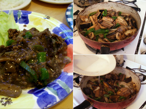 <ひき肉となすの炒め>