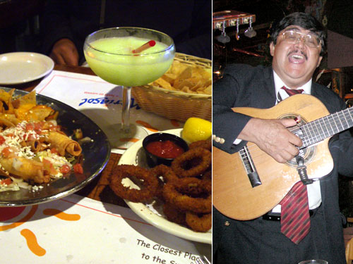 メキシカン前菜盛り合わせ、イカリングフライ、マルガリータ1杯、ビール4杯、マリアッチへのチップUS$5