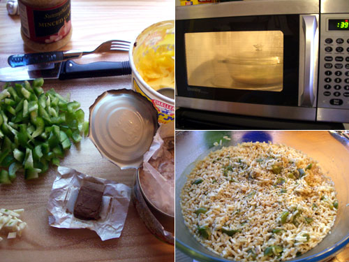 ブラウンライスという長粒米に挑戦。袋の裏には電子レンジで調理するには「米カップ1に対して水カップ2、スプーン1杯のバターとティースプーン1杯の塩を加えて、フタをして強で5分、弱で15分」とある。具として、緑パプリカとかに缶とブイヨンとにんにくを入れた。レンジの強弱設定がわからないので、結局24分行ったがまだ芯がある。失敗だった。そうだ、明日はBaked Potatoボタンを使ってみよう。