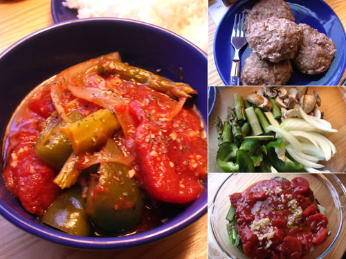 献立:トマト煮込みハンバーグ、ご飯