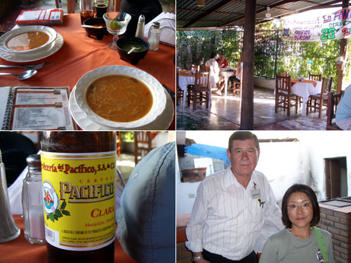 献立:Pescado a la veracuruzana、Bisteck ranchero、コーラ、ビール