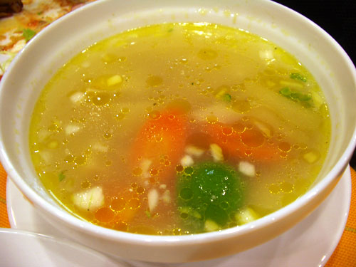 普通に野菜コンソメスープ。人参、じゃがいも、緑パプリカが入っている。玉ねぎのみじん切りとライムが付いてくる。やさしい味で、全く辛くなく、これはメキシコ料理ではないかもしれないです。