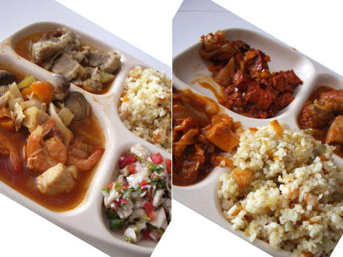 ホテル近くにはFondaと呼ばれる伝統的な定食屋がちょこちょこある。昼間通った時に、アンチョビみたいないい香りをさせていた一軒に行ってみた。シーフード惣菜が10品くらい並んだ中から、好きな物を選んでプレートに乗せて一人500円くらい。魚、イカ、エビ、貝を使ったものばかりで、みんなちょっぴり辛い。初めてセビッチェ(白身魚のマリネ風-写真中央下トマト入り)を食べた。トマトがフレッシュでおいしい。