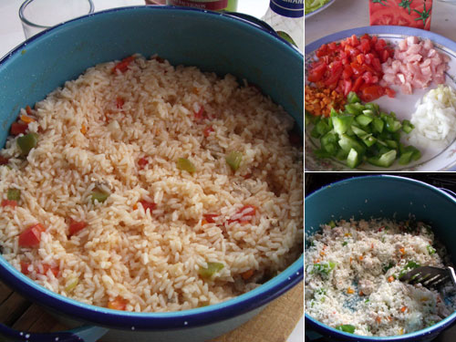 グアナファトの健康食品店で、日本米を見つけた。他にも味噌、豆腐、S&Bゴールデンカレー、札幌一番インスタントラーメンまであって、びっくりだった。久しぶりの日本米。にんにく・玉ねぎ・豚肉。緑パプリカ・人参を炒め、米とトマトを加えて炒め、ブイヨンを入れて沸騰させた湯を加えて強火で5分、弱火で15分、火を止めて15分蒸らしてできあがり。