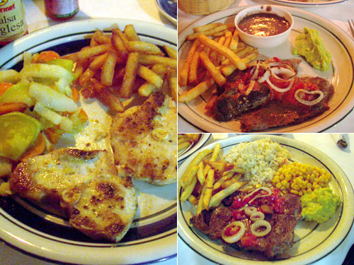Limo de Resというメニューは何か?と聞いたら「カルド・デ・レスだ」という答え。カルドと言えば、今までスープを指していたので、すっかりスープだと思い込み、牛の別の部位の同様メニューを頼み、じゃぁメインに魚のステーキを頼んでシェアしようした。が、来たのはスープでなくステーキ。うわっ。というわけで3人前を2人でたいらげた。魚は鱒っぽかった。付け合せの野菜煮が美味。
