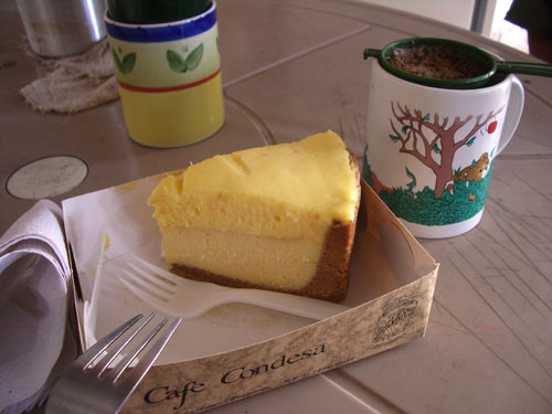 パルケ(中央公園)に面したこのカフェはちょくちょく行く。今日は初めてケーキにトライ。ティラミス、NYC、ムースなどいろいろある。しかし、ん?どのケーキも、ちょっと不思議。結局NYCにしたが、これは上3分の1がカスタードムースで、チーズケーキは下の部分。ティラミスも、マスカルポーネが上1cmで下5cmはスポンジ。割合が反対かも。ケーキは脳が溶けそうに甘かった。むむむ。