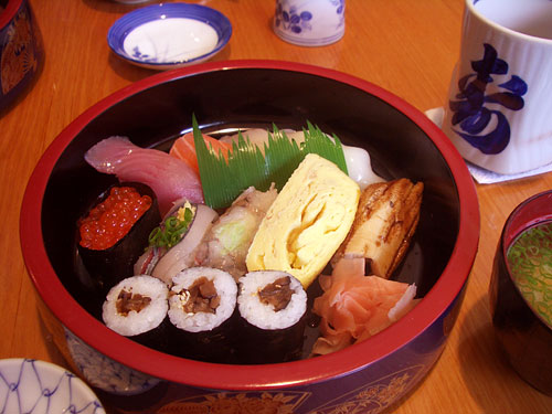 海苔巻き3巻を含む12巻と豆腐と葱の味噌汁。海外のお寿司というと、米がよくなかったり、おにぎりのように大きなにぎりだったり、冷凍物の戻し方が悪いのか、水っぽかったりする寿司にはよく出会った。しかし、ここのは本格的。どれもネットリとして脂がのり、それぞれの魚の味がする。にぎりも小ぶり。海苔巻きもプーンと磯の香りがして、食べるとゴマ風味。少ないかなぁと思ったがお腹いっぱいになった。