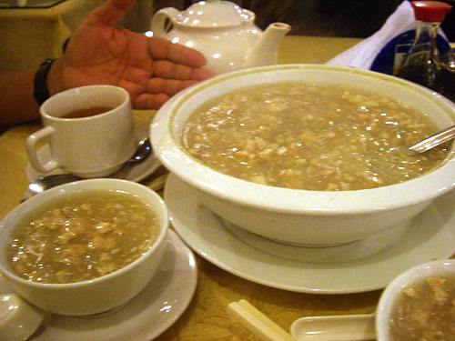 近所の中華店は高級感があるけれど、奥さんは子供を背負いながら店番するという働き者夫婦の素朴さも感じられて、とても気に入っている。味もいい。ここでスープの家族用を頼む。奥さんは「四人〜五人」と漢字でメモに書いて「大丈夫?」と聞くが、これだけ注文するのでというと納得してくれた。片栗粉でとろみの効いたスープはいつまでも熱い。春雨も体にやさしい。まさかと思ったが全部食べられた。