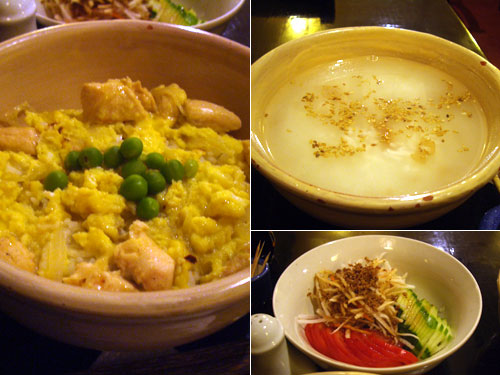 献立:親子丼、お粥、和風サラダ