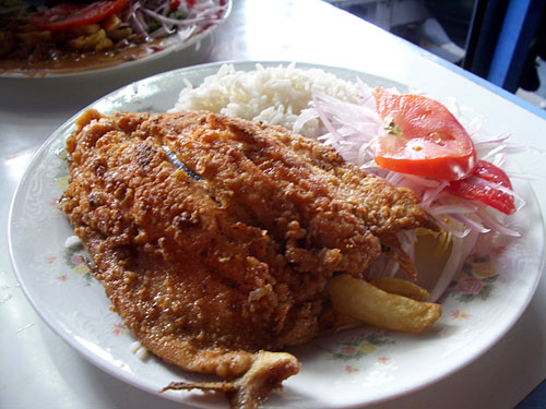 トルーチャTruchaはチチカカ湖で獲れるマスで、この辺りの名物とガイドブックにあった。牛肉専門店だが、注文してみた。アグアス・カリエンテスで食べたのは、白っぽい身でぱさついていた。しかし、こちらは肉厚で、とってもジューシー。さすがにツーリスト向けでなく市場の食堂だ。地元の舌をごまかすことはできないのだろう。色もピンクが強く、イメージしている通りのマスでおいしかった。