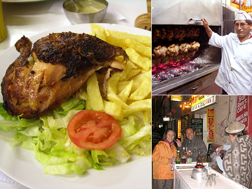 献立:鶏の丸焼き、フライドポテト、サラダ、コーラ、食後に街角でお茶