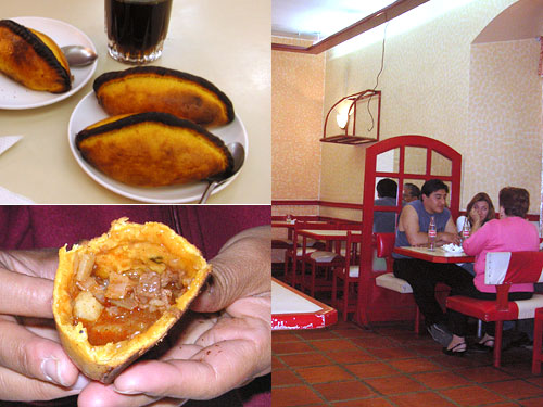 サルテーニャは、牛肉と玉ねぎとジャガイモをスパイシーに甘辛く煮た具が入った生地をオーブン焼きしたもの。ラ・ガイラは持ち帰り及び店内で食べられるサルテーニャがおいしいと有名な店だ。というのもここのサルテーニャはまるで小龍包のように中にスープがたっぷり入っているからだ。通はそのまま、素人はスプーンですくって食べる。