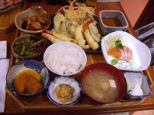 ラ・パスに2軒ある日本料理やの一軒に行った。大通りから一本入った路地の一軒屋は、一歩入ると日本の雰囲気。わがままセットは7品にご飯と味噌汁が付く。左上から時計回りに、鶏肉の甘辛煮、天ぷら、トゥルチャの刺身、大根の甘酢漬け、味噌汁、漬物、ご飯、かぼちゃの煮つけ、インゲンの煮物。怒涛の和食攻撃に夫も大満足。天ぷらは高地で作るための工夫なのか、フリッターのような衣が特徴的だった。
