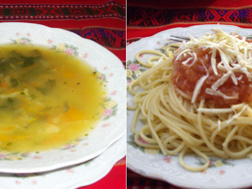 今日はラグーナ・コロラド国立公園内にある宿。キャンプよりもましという感じの非難小屋めいた宿は、赤い湖が目の前だ。入口の扉から左右にダイニング、その奥が各部屋という作りである。とにかく寒い。食事の途中で部屋に戻って、着込んで食事を続けた。明日は4時に起床してそのまま出発。食べてすぐに寝ないと睡眠8時間は確保できないことを考えると、このくらいの食事が丁度いい。