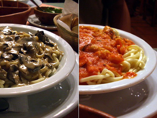 大量のピカードとパンやチップが来るとは知らず、パスタまで頼んでいた。タジャリンはペルーやボリビアでもあったが、扱いは中華麺が地元化した感じで、野菜あんかけにしたり焼きソバ風で出てきたが、こちらは手打ちスパゲッティーの扱い。麺も本当に生麺だった。ソースは缶詰などでなく、本格的なソース。アルゼンチンに来ていきなりヨーロッパの世界に変わってしまったようで不思議だ。