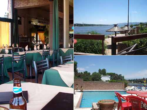 カルロス・パスはコルドバの人に人気の保養地だそうだ。湖沿いにはプール付きの洒落た小さなホテルが並んでいるが、このレストランもそんなホテルの1階にある。インフォメーションの兄さんが勧めてくれたのだった。隣はプール、目の前は湖。店内はグリーンとサーモンピンクを基調としたイタリアンな内装で、なかなかカッコイイ。休暇で来ているのか、午後1時を過ぎると次々に白人家族が入ってきた。