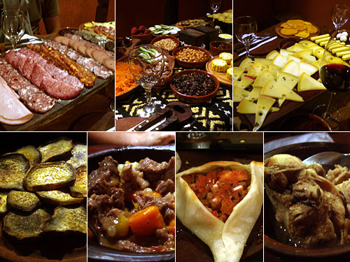 細長いテーブルには、左端に10種類くらい並んだハムとサラミの台、右端にリコッタ・ヤギなどのチーズの台、その間にサラダやドライフルーツやドライ人参や大豆のオイル煮などが置いてあった。どれもマルベックというブドウの赤ワインに合う。牛肉の赤ワイン煮、トマトとミンチのパイ生地包み焼き、うさぎの煮込みも後から出てきて、もうお腹いっぱい。で、場所を中庭に移して、葉巻とアイスクリームのデザート。下を向けない程食べた。