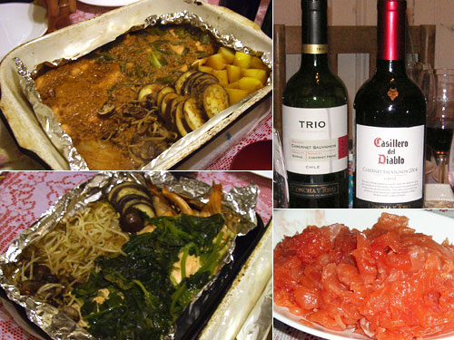 隊長の勇樹さんのお陰で素晴らしいご飯となった。味噌とみりんと酒と砂糖とねぎのみじん切りのたれをかけてオーブンで焼いたちゃんちゃん焼き、バターを乗せて焼いた鮭、味噌と牛乳を入れた石狩風味噌汁、そして中骨から身をそいだ中落ち。旨いねぇ。荒井さんと我々はワインを供出。TRIOは3種のブドウを使い、Diabloはカベルネ・ソーヴィニヨン。味噌たれによく合った。