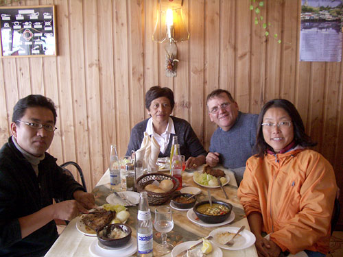 このチリ人の夫婦とは日帰りツアーで一緒になったのが今日で3回め。オーストラリア在住20年ということで、英語が通じるので当然仲も良くなる。この旅行のために1年間必死で働いてきたという夫妻は、行く先々でおいしいものをたらふく食べて、お土産をばんばん買って、心からこの旅行を楽しんでいるようだった。この温かい夫妻と一緒でプエルト・モンのツアーはいつも大笑い。