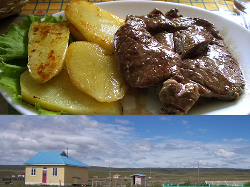 ところがである。メインのステーキを一口食べたとたん「うまい!」と感激。臭みがなく、ジューシーな肉は、まさしく新鮮そのもの。今までの不機嫌はどこへやら、バクバクと食べた。思えばここ何食かはハムチーズサンドばかり。辟易していたのも確かだが、それを差し引いても、ここのステーキは抜群においしかった。店を出て、裏手に牧場があるのに気付いた。なるほど。産直なのだ。