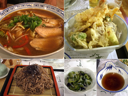 味噌ラーメンはちょっと甘みの強い赤味噌を使っているのが変わっていた。麺はもしかしてタジャリン(この辺りで普通に食べる生パスタ)?ま、総合判断としては日本のとは違うけどそれなりにおいしい(夫談)。天ぷらの揚げ具合はさすがにプロ。材料にバナナが入っているのが面白かった。そばは厳しい。そば粉のつぶつぶは見えるけど、もしかして片栗粉とか入ってる?妙にぷりぷりしていた。酢の物はありがたい。