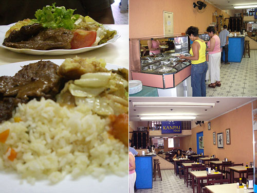昼時になるとポルキロ(1キログラムあたりいくら)という重量課金制のビュッフェをやっている店をよく見かける。この店もポルキロなのだが、他よりも安い上、何となく和風のおかずがあったり、日本米があったりして2日続けて来てしまった。ご飯とメインと野菜で500gくらいもあればお腹いっぱいになり、US$2.5くらいなのでお得。味もまずまずおいしい。デザートにミニゼリーが付き、食後のコーヒーと食間のほうじ茶はフリー。やめられないね。