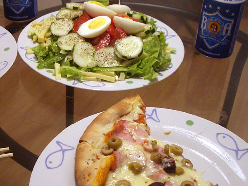 イパネマ紹介の雑誌にピザレストランの広告があり「アメリカで大衆化されたピザがブラジルに入り、イパネマで洗練された味へと変革した」とある。イパネマのピザはどんな味か知りたくなった。で、冷凍ピザってのもどうかと思ったが、試してみた。なるほど、アメリカのパンピザ文化(やたらに生地が厚い)は影をなくし、カリカリの薄い生地。チーズの下にベシャメルソースが敷いてある。へー、なかなか面白い。