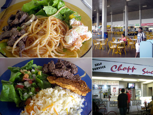 最新でピカピカのレシフェの空港に比べると長距離バスターミナルは古びて閑散として少し寂しい雰囲気だった。しかし軽食屋が並ぶ中の1軒のビュッフェ形式の店は、郷土料理色が出ているので我々には面白かった。左下のオレンジ色の物体はバイーア料理の豆のペーストを揚げたものだろう。先日リオ・デ・ジャネイロで食べたものと同じだった。フワフワして豆の味がする。日本でいったらがんもどきみたいな存在なのだろうか。
