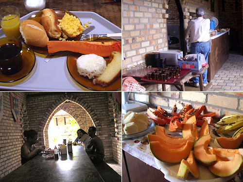 レシフェに引き続きナタルのポンタ・ネグラ海岸でも同系列のホステルに宿泊しているが、2軒続けて朝食のフルーツのボリュームが凄い。メロン、パパイヤ、パイナップル、バナナ、スイカなどが大きく切ってどっさりと置いてある。更にグアバやパイナップルのフレッシュジュースも数種類。日焼けで失ったビタミンをここで補給できるという計らいは嬉しい。中世の城風ダイニングで。
