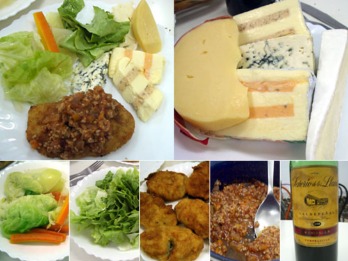 昨日2時間かけて作ったベシャメルソース入りのポテトコロッケに今日の昼の余りのミートソース、塩茹で野菜と生野菜にチーズの盛り合わせ。このメニューとくれば地元のテンプラニーニョだ。EUR2.56(=US$2.98)なのに結構いけた。チーズ盛り合わせでEUR7.32は日本では味わえない。エメンタール、ロックフォール、ブリーとあと2種は鮭のパテとナッツのパテの入ったもの。イヤー、自炊はやめられないです。