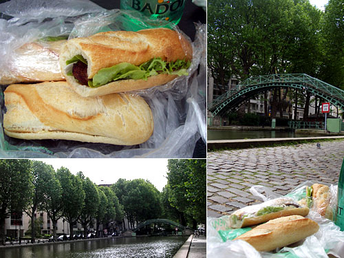 フランス映画Ameliで主人公のアメリが水切りをしていたサン・マルタン運河を訪ねた。今日のランチはサン・マルタン運河にかかる太鼓橋の近くのベンチでサンドイッチ。ソーセージは豚肉含有率91%の正しいソーセージ。研究の結果、安定して満足できるソーセージを食べられるようになった。たいした研究でもないが・・・。今年のパリの春は悪天候。今日も曇り空だが水のある風景は気持ちいい。
