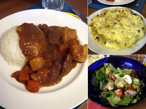 友人が前日から煮込んでおいたというカレーライス、旦那さんがスペインのジャガイモ入りオムレツのトルティーヤとサラダを用意してくれていた。圧力鍋で煮込んだ驚くべき柔らかい牛肉のカレー。旦那さんから「カレーはご飯にどの程度かかるのが好みか?」と聞かれてびっくり。考えたこともなかったなぁ。トルティーヤはカリッとさせたジャガイモと玉ねぎ入りでこれも美味。2人とも仕事だったのにすまないねぇ。