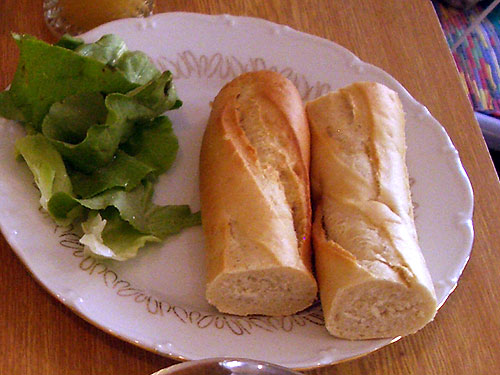 第四弾はバゲット。真空パックになって売られていることから、もうかなり期待薄だった。食べてみると、形はバゲットの形で焼かれているが、もちもちとしてずっしりと重い生地はゼンメルに他ならない。オーストリア人はやっぱりゼンメルが好きなんだ。米好きの日本にライスバーガーがあるように、ゼンメルバゲットがここでは普通。ゼンメルとしはまぁまぁ旨い。