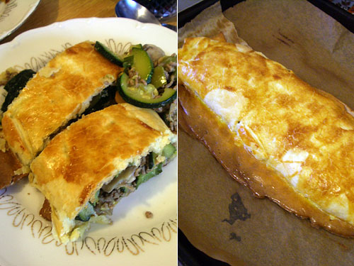 やっぱりねぇ。卵多すぎ。しかもムラになっていて塗れていない所もあり、仕事の雑さが目立ってしまった。でもね、こんなに雑に作っても、生地はさっくりと焼けるし、中はジューシーさが保たれているし、おいしかった。生地は柔らかいので、巻く途中でやぶれることもある。そんな時は端っこをちぎって、つぎあてをしておくと、中のジューシーさが外にもれなかった。トマトソースやホワイトソース使ってもいけるね。