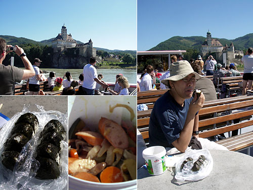ドナウ川にあるヴァッハウ渓谷に出かけた。お昼時が遊覧している時間に重なり、船上でのピクニックとなった。メニューは別にたいしたものじゃないが、郊外のおいしい空気の中で食べるのがいい。おかずの入れ物はヨーグルトが入っていた容器。密閉できるフタもついているし、そのまま捨てて帰ってこられるし、とても便利だ。トルコのお米はおにぎりにするとやや味に難あり。お米は冷えて価値がでるね。