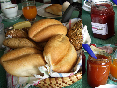 出勤する妻を職場まで車で送ったクリスチャンが焼きたてのパンを買ってきてくれて朝食。このパン、オーストリアで食べた中では一番おいしい。これこれ、こういうのが食べたかったの。やっと巡り会えた。食卓には庭で採れたアプリコットといちごのジャムが並んでいる。防腐剤なしの天然のジャムは、それだけで食べても十分においしい。