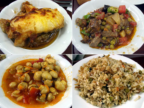 左上から時計回りにマッシュポテトの中にチキンとナスの煮物を入れてチーズをかけてオーブン焼き。これ私のお気に入り。ラム肉、トマト、じゃがいも、グリーンピース、人参の煮物。マッシュルームとトマトの煮物。鶏肉、グリーンピース、干しぶどうが入ったピラウ。トルコ料理おいしいねぇ。どれもご飯に良く合う。ラマダン明けのトルコのおっさんは、スープ、サラダ、メイン、デザートのフルコース。ひえー、太りそう。