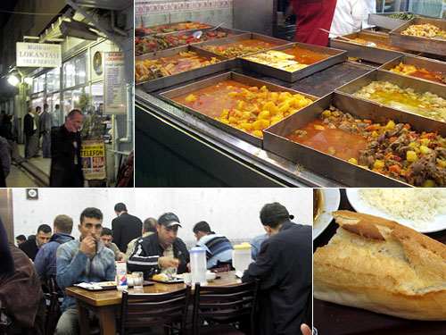 路面電車のアクサライ駅で降りてユスフパシャ駅に向かって右側を歩いていると、左手にエスカレーターで降りるところがいくつかある。2回目のエスカレーター口に差し掛かった時に右を見ると、階段を5段くらい下がった所にロカンタがある。それがBalkanだ。品数はシルケジ駅のBalkan(同名の別店)より少ないが料金は安い。味はまぁまぁだった。現地の男性しかいないので、女性への注目度が異常に高い。