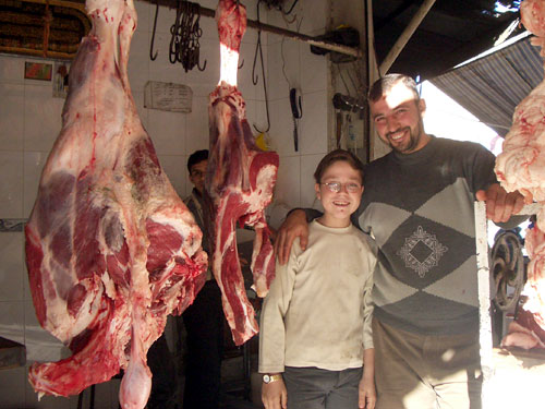 2回目の来店ではお猪口入りカルダモンコーヒーも出る。スパイスが強くカルダモン汁コーヒー風味というのが正しい。これをキュッと一杯ひっかけて商談開始。メモを見せるとOKとサクーッと肉を切った。希望の厚さ1.5cmを大幅に上回る4cmくらいを縦に切って、ざくざくと一口大にしようとしている。違う、違う。とりあえず細切り2本の肉でストップ。もう一枚は厚さ6cmになった。
