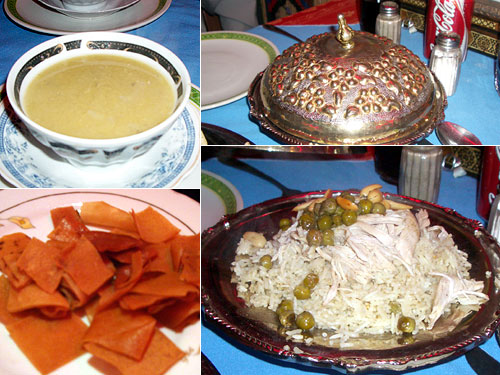 パルミラ神殿遺跡の周囲にテントで生活する遊牧民の姿がある。彼らがベドウィンだ。以前はシリア・ヨルダン・イランを自由に行き来していたが現在は国境を越えるのが難しくなってきているそうだ。パルミラの数少ないレストランで必ず出されるのがベドウィン料理。早速食べてみることにした。一品はマンサフというピラフ。丁子やシナモンの利いた炊き込みご飯で上にナッツとチキンとグリーンピースが乗っている。