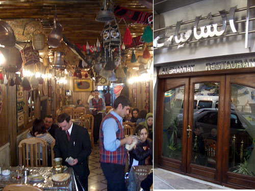 宿の日本語情報ノートに書かれていた情報を頼りにダマスカス大学近くの食堂に行った。大学近くの食堂というと早稲田大学近くに住んでいた私たちにとっては安いけどちょっと汚いというイメージ。ところがビックリ。今までシリアで見た限り、一番洒落たレストランだった。中には将来を嘱望されそうな若い大学生がいっぱいて青春している。お値段はシリア値段で安くもなく高くもなく。とにかく清潔で洒落ていた。