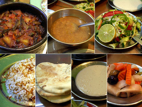 お気に入りの定食屋のセットは、ケバブ、牛肉、鶏肉の3タイプ。今日は牛肉セットを注文。牛肉といってもキャセロールに入ったビーフシチューでいんげん、人参、ジャガイモ、牛肉一口より大きな塊3が入ったトマトソース煮。スープはメロンの種みたいな形の豆入りで旨い。これにサラダ、ご飯、パン、ホンモス(豆のペースト)、漬物が付いてくる。バランスが取れていて一人前EGP13(252円)だからとっても嬉しい。