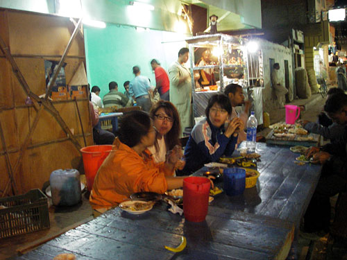 店は白人あるいは日本の美しい旅行ばかりしている人は絶対に入らないだろーなーという店。幸いにも他2人の女性はこんな店でも全然OKということだった。値段は意外にもふっかけてこなくて好印象。同席のエジプト人たちが話しかけてくる、話しかけてくる。うるさーい!でも、日本語での話しに熱中していたら、誰もいなくなってしまった。翌日お腹も壊れていないし、エジプトの食堂は大丈夫なようだ。