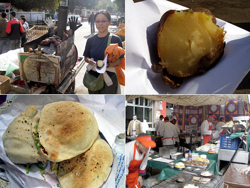 外出中にどうしても空腹になり、みかけた焼き芋屋台から一つ買ってみた。空腹も手伝ってものすごくおいしい。エジプトで焼き芋。不思議だ。しかも手のひらいっぱいの大きさでEGP0.5(約10円)という安さ。また食べたいなー。これじゃぁ足りないのでいつものファラフェルサンド屋に行くと年始の体勢で店前にテントを出して大盛況。押すな押すなの地元エジプシャンに囲まれてやっと買うことができた。