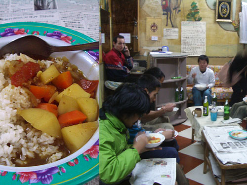日本から直接持ち込まれたという貴重なカレールーを皆に振舞ってくれるという奇特な宿泊者1名。彼のお陰で、今夜は日本のカレールーを使ったシェア飯の夜となった。人参、玉ねぎ、じゃがいもの具に加えて、お肉は牛肉のミンチ。トマトや他のスパイスも加えて、日本のカレールーを使いながらも、旅行者らしいスパイスの効いたカレーができあがった。宿の共有ロビーを占拠してカレーライスを食べていると、まるで合宿にでも来た気分だ。