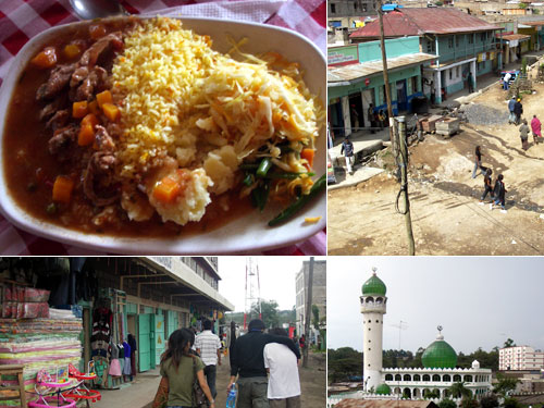 マサイ・マラ国立公園に向かう途中の小さな村に立ち寄った。土の舞う道路沿いに商店が並ぶひなびた村で、こんな所でどんなご飯だろうと思いきや、ホテルの上階にあるレストランはこざっぱりとした外国団体観光客向けといった趣だった。ビュッフェ形式。温野菜はキャベツの煮物とインゲン・玉葱・人参の煮物の2種類、シチューは牛肉。どれもおいしいが塩味がとても薄い。卓上塩が飛び交った。